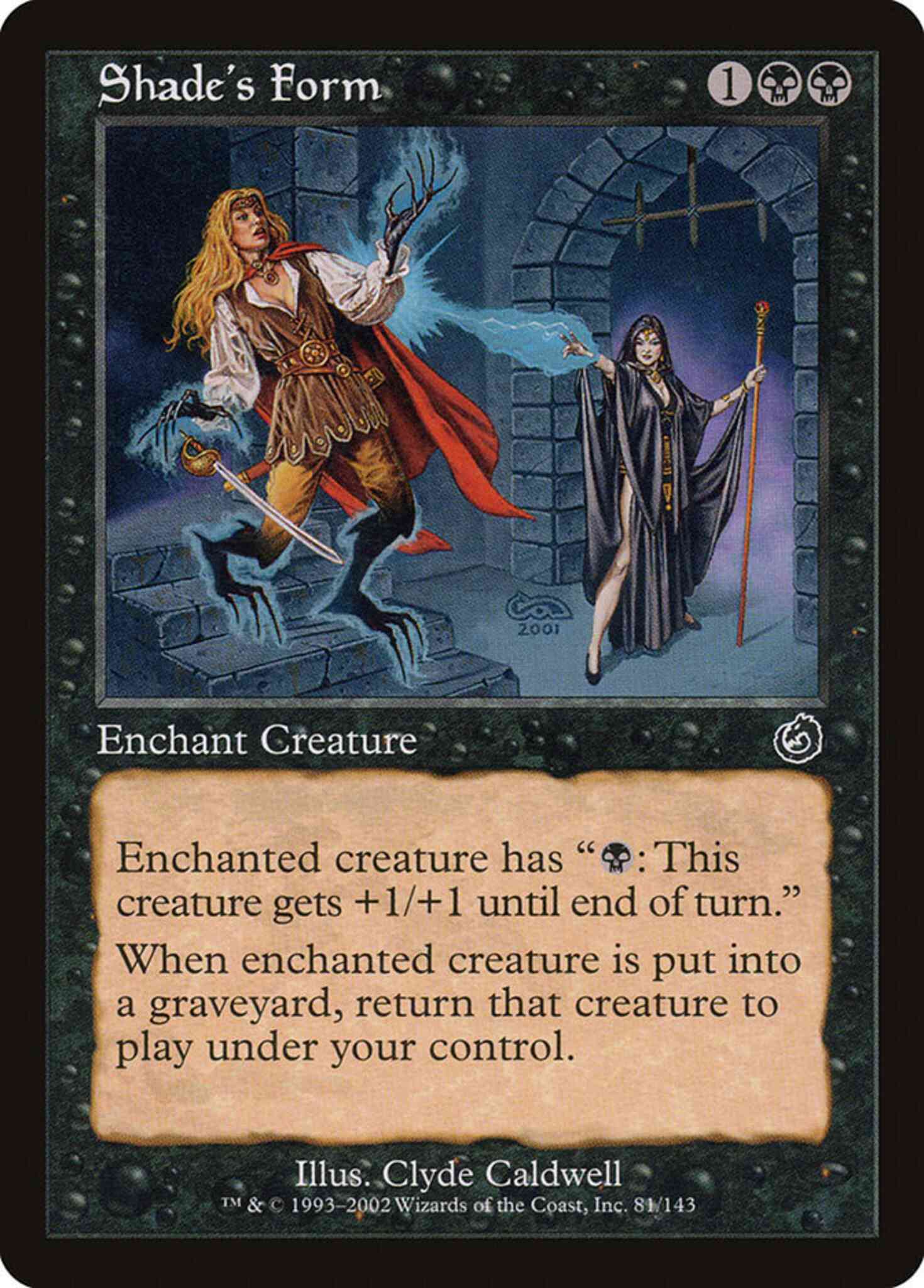 Card Text: Enchant creature Enchanted creature has "{B}: This creature gets +1/+1 until end of turn." When enchanted creature dies, return that card to the battlefield under your control.
