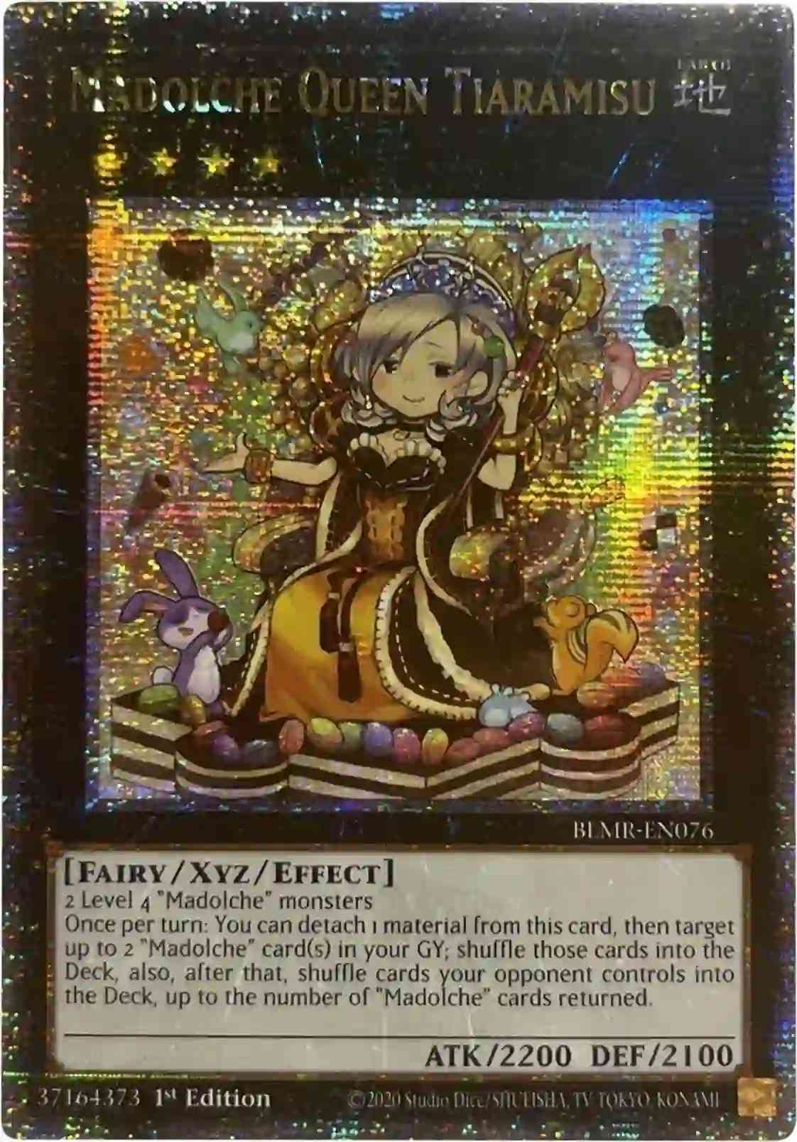 Card Text: 2 Level 4 "Madolche" monsters Once per turn: You can detach 1 Xyz Material from this card, then target up to 2 "Madolche" cards in your Graveyard; shuffle those cards into the Deck, also, after that, shuffle cards your opponent controls into the Deck, up to the number of "Madolche" cards returned.