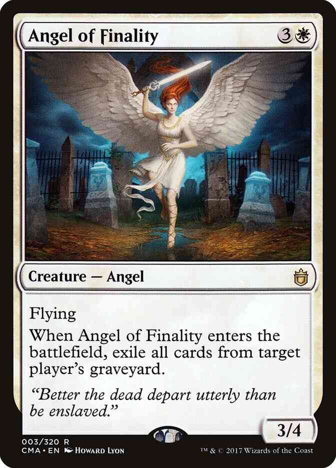 When Angel of Finality enters the battlefield, exile all cards from target player's graveyard.