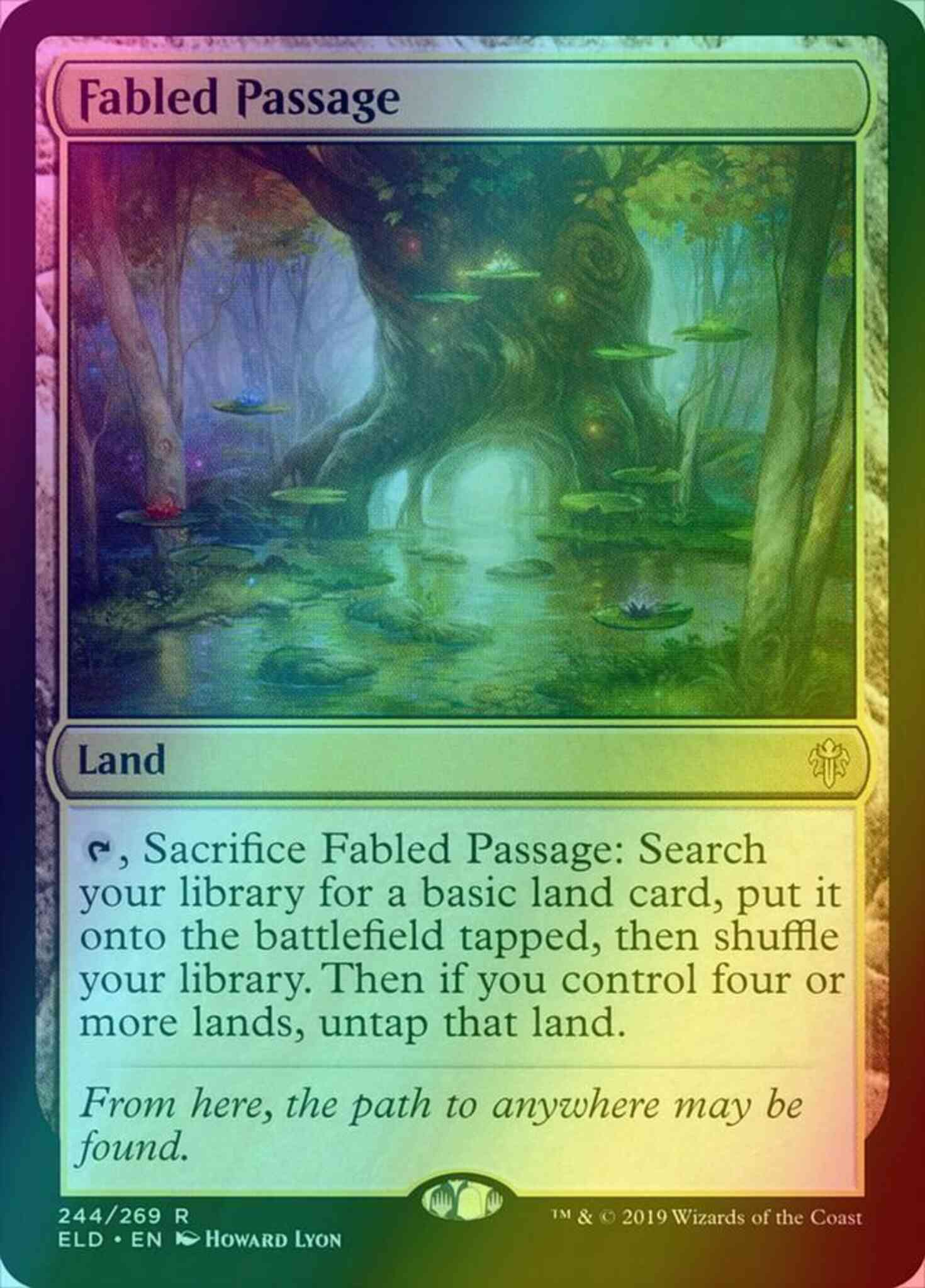 {T}, Sacrifice Fabled Passage: Search your library for a basic land card, put it onto the battlefield tapped, then shuffle your library. Then if you control four or more lands, untap that land.