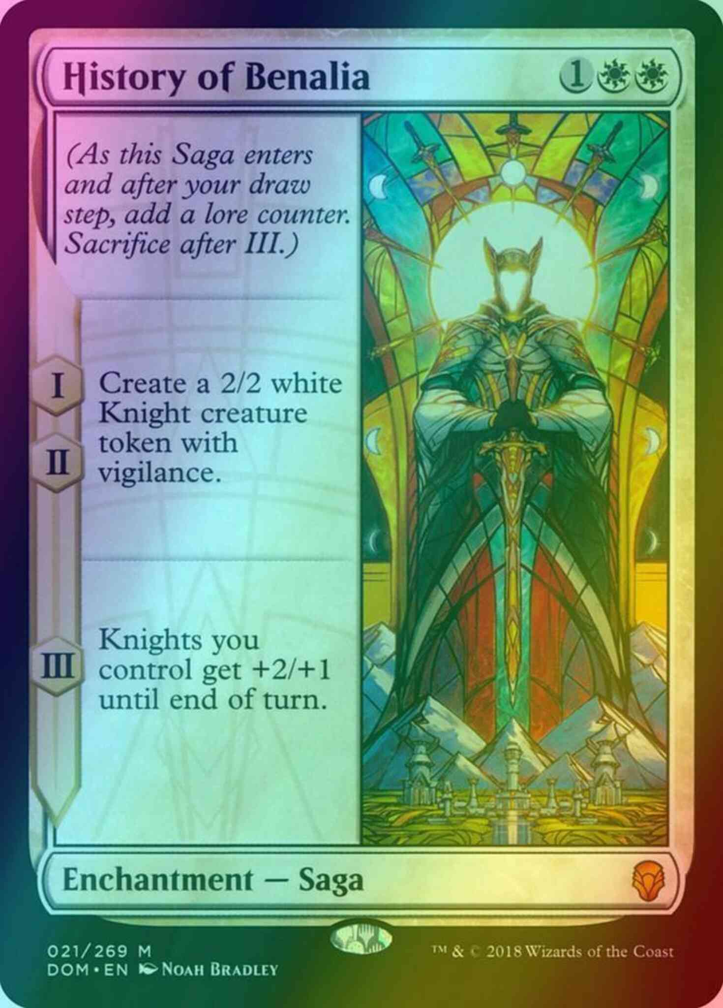Card Text: (As this Saga enters and after your draw step, add a lore counter. Sacrifice after III.) I, II — Create a 2/2 white Knight creature token with vigilance. III — Knights you control get +2/+1 until end of turn.