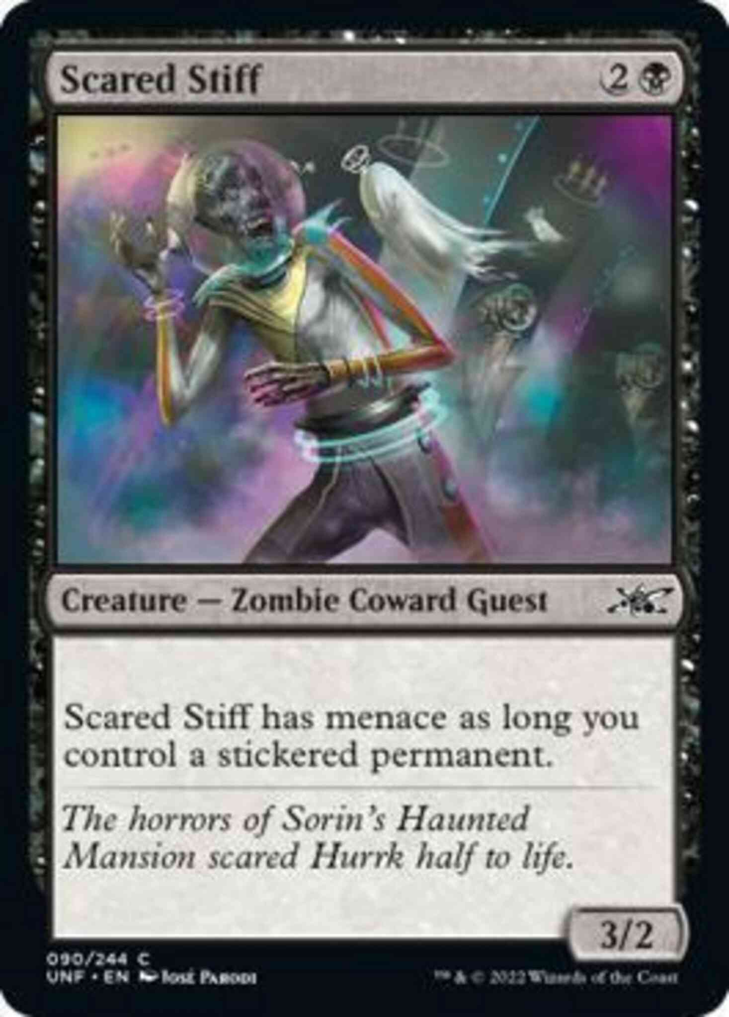 Scared Stiff has menace as long as you control a stickered permanent.