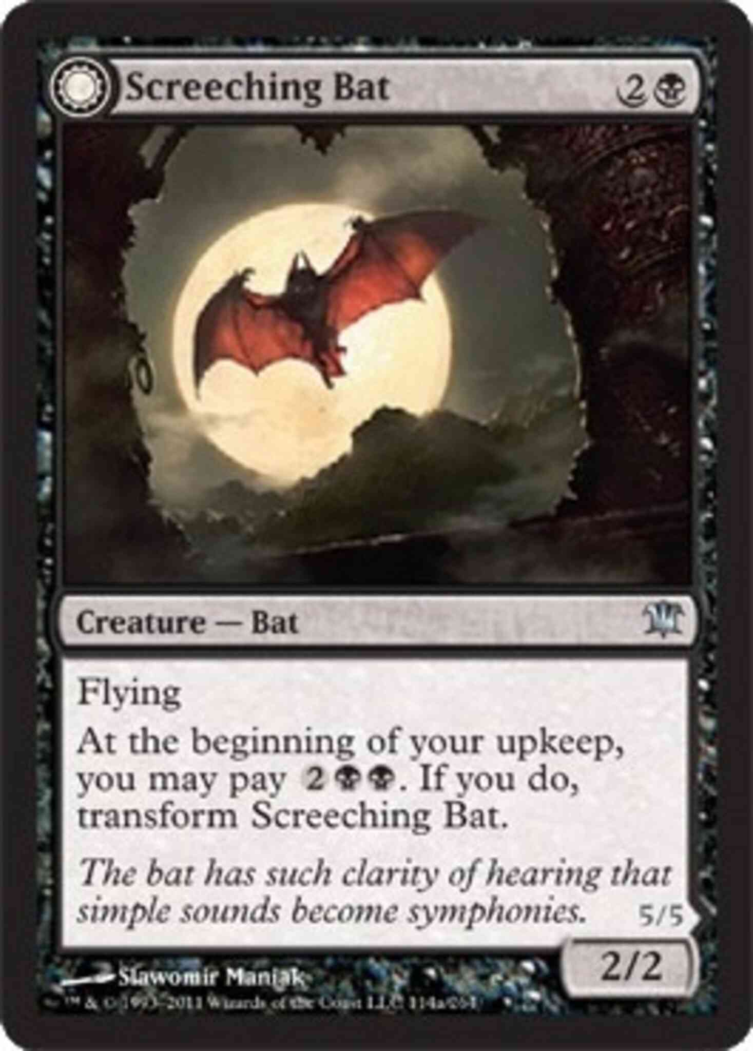 At the beginning of your upkeep, you may pay {2}{B}{B}. If you do, transform Screeching Bat.