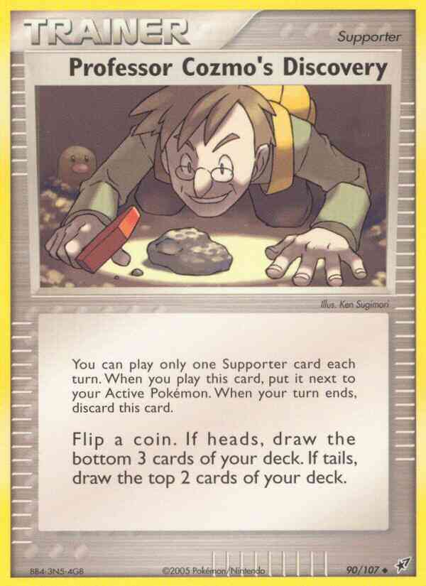 Flip a coin. If heads, draw the bottom 3 cards of your deck. If tails, draw the top 2 cards of your deck. You can play only one Supporter card each turn. When you play this card, put it next to your Active Pokémon. When your turn ends, discard this card.