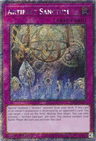 Special Summon 1 "Artifact" monster from your Deck. You can only activate 1 "Artifact Sanctum" per turn. You cannot conduct your Battle Phase the turn you activate this card. If this card in its owner's possession is destroyed by an opponent's card: You can target 1 card on the field; destroy that target.