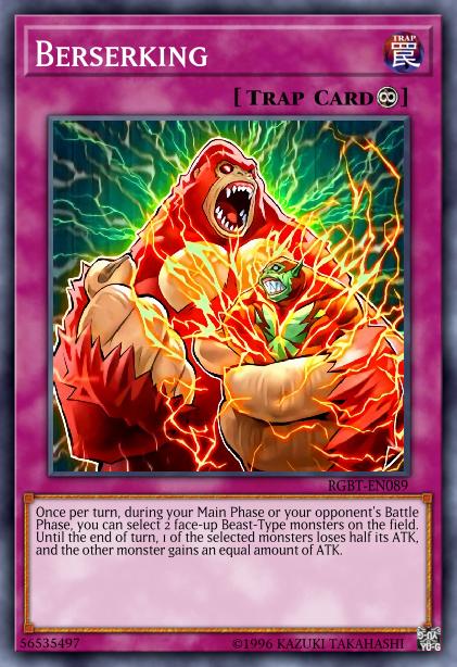 Once per turn, during your Main Phase or your opponent's Battle Phase, you can select 2 face-up Beast-Type monsters on the field. Until the end of turn, 1 of the selected monsters loses half its ATK, and the other monster gains an equal amount of ATK.