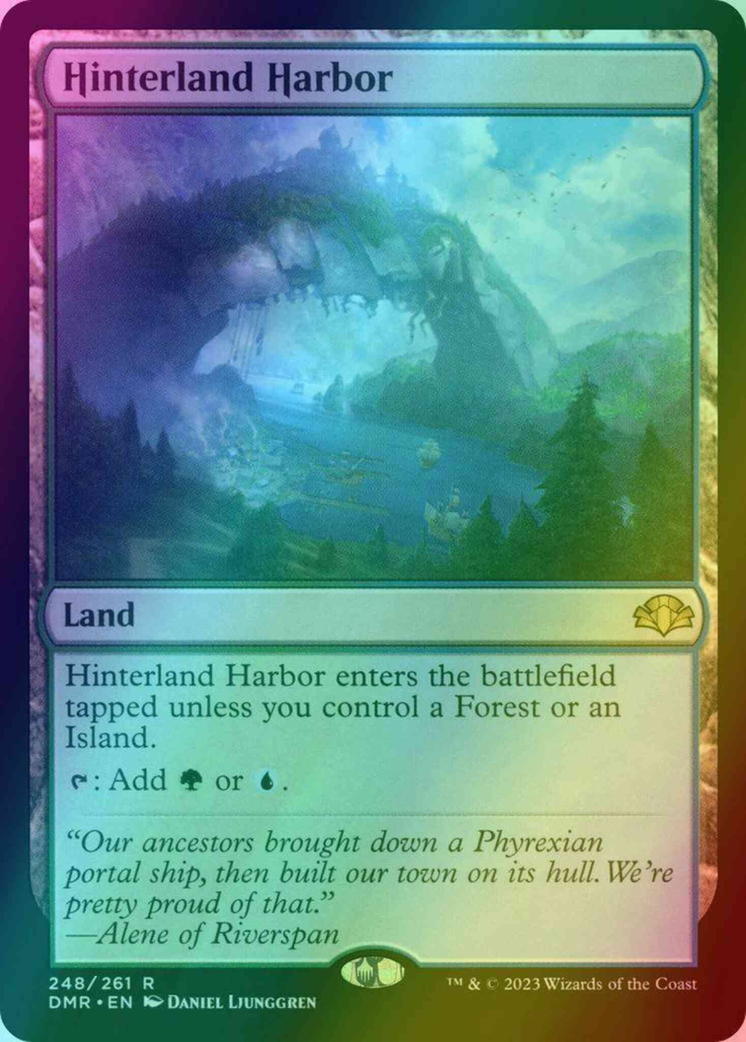 Hinterland Harbor enters the battlefield tapped unless you control a Forest or an Island.