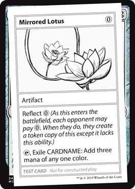 {T}, Exile Mirrored Lotus: Add three mana of any one color.