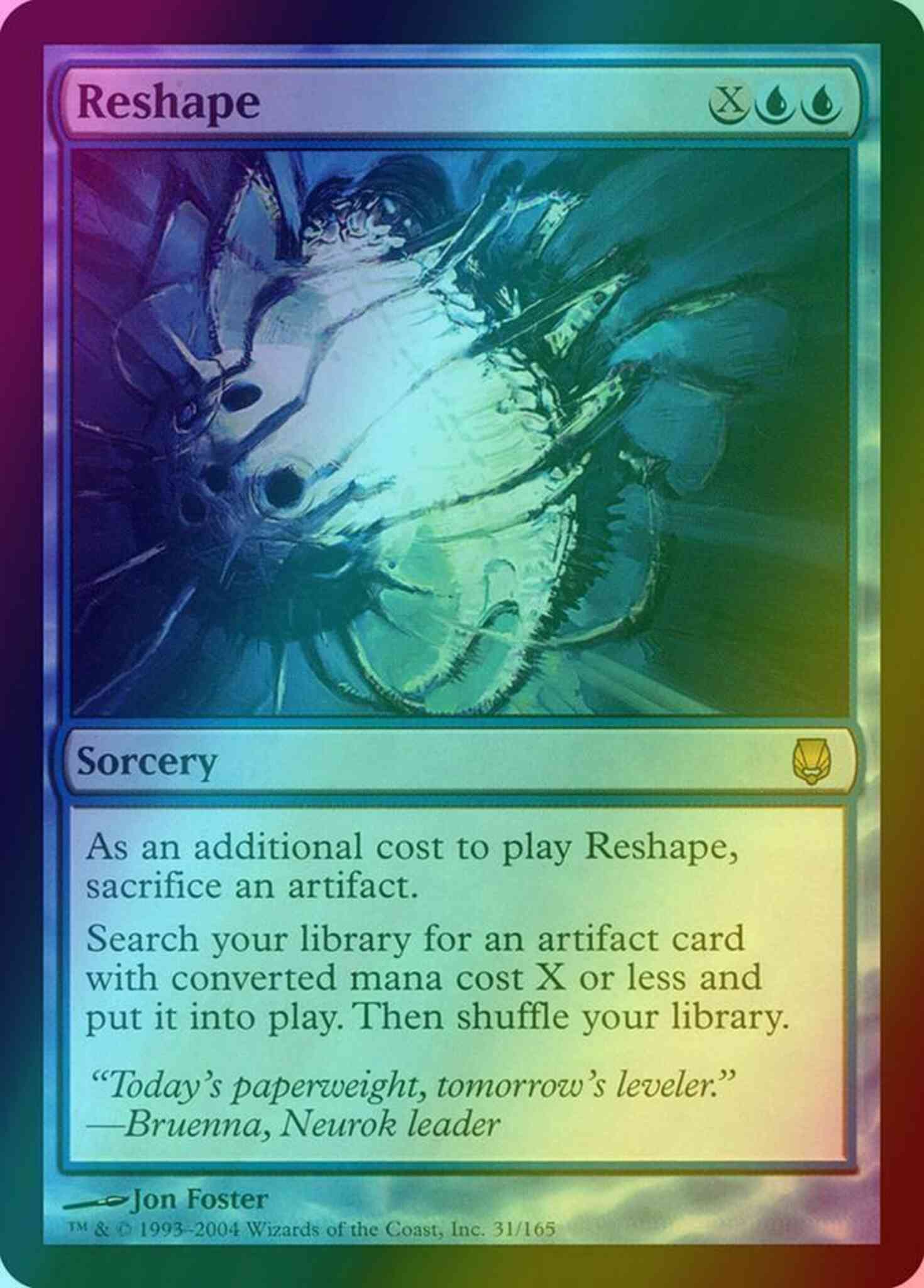 Card Text: As an additional cost to cast this spell, sacrifice an artifact. Search your library for an artifact card with converted mana cost X or less and put it onto the battlefield. Then shuffle your library.