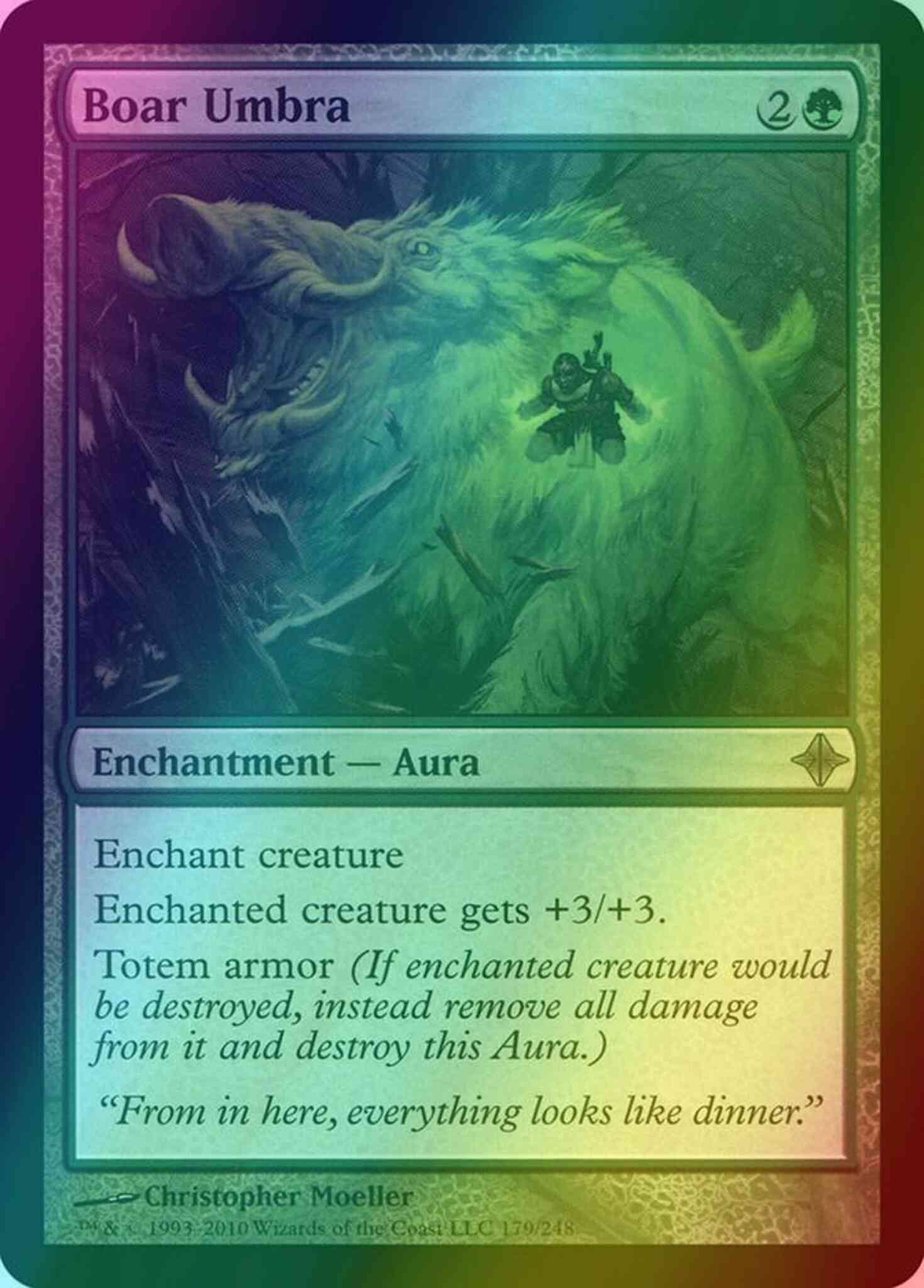 Card Text: Enchant creature Enchanted creature gets +3/+3. Totem armor (If enchanted creature would be destroyed, instead remove all damage from it and destroy this Aura.)