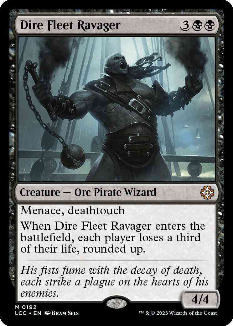 When Dire Fleet Ravager enters the battlefield, each player loses a third of their life, rounded up.