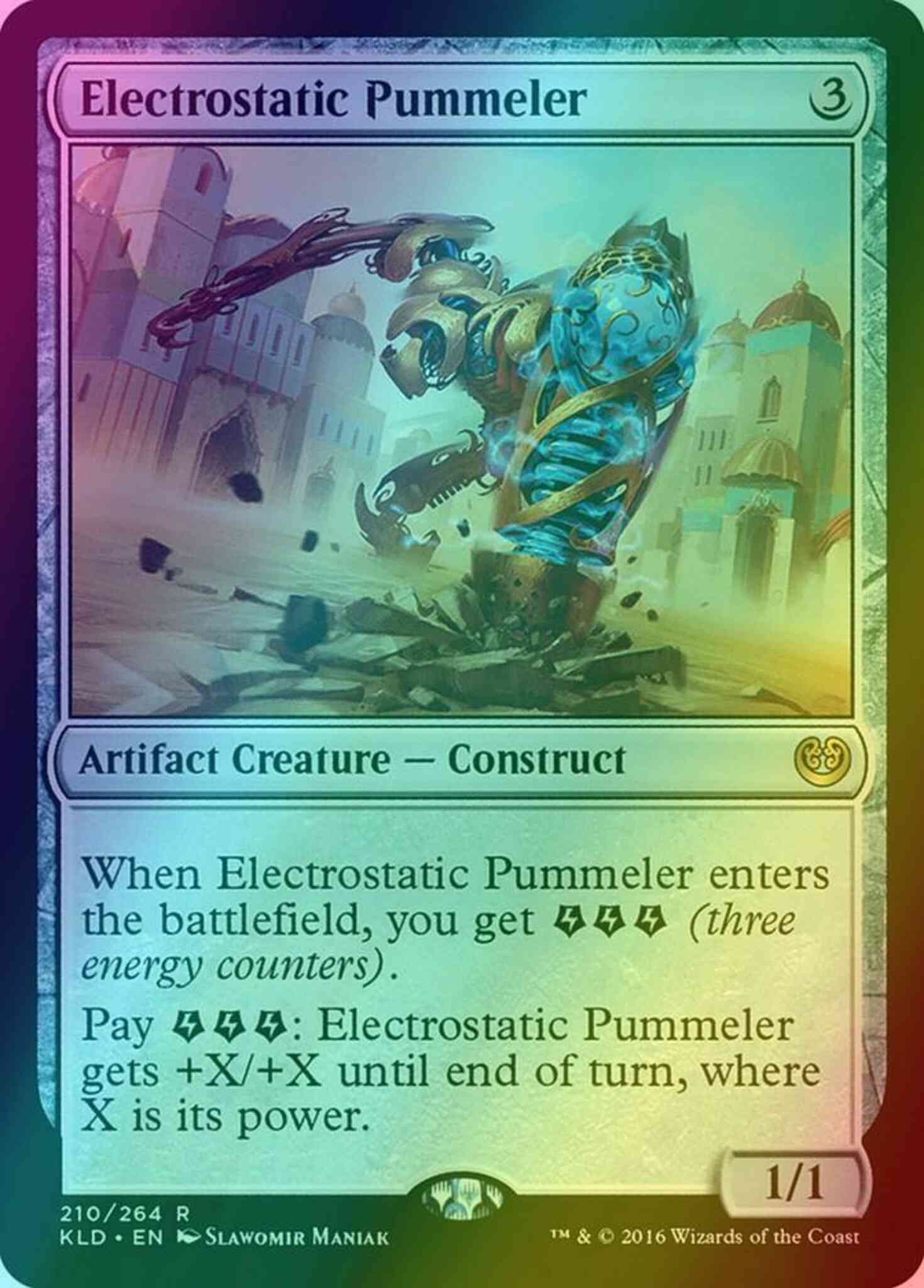 When Electrostatic Pummeler enters the battlefield, you get {E}{E}{E} (three energy counters).