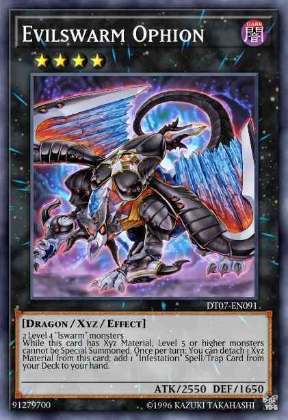 While this card has Xyz Material, Level 5 or higher monsters cannot be Special Summoned. Once per turn: You can detach 1 Xyz Material from this card; add 1 "Infestation" Spell/Trap Card from your Deck to your hand.