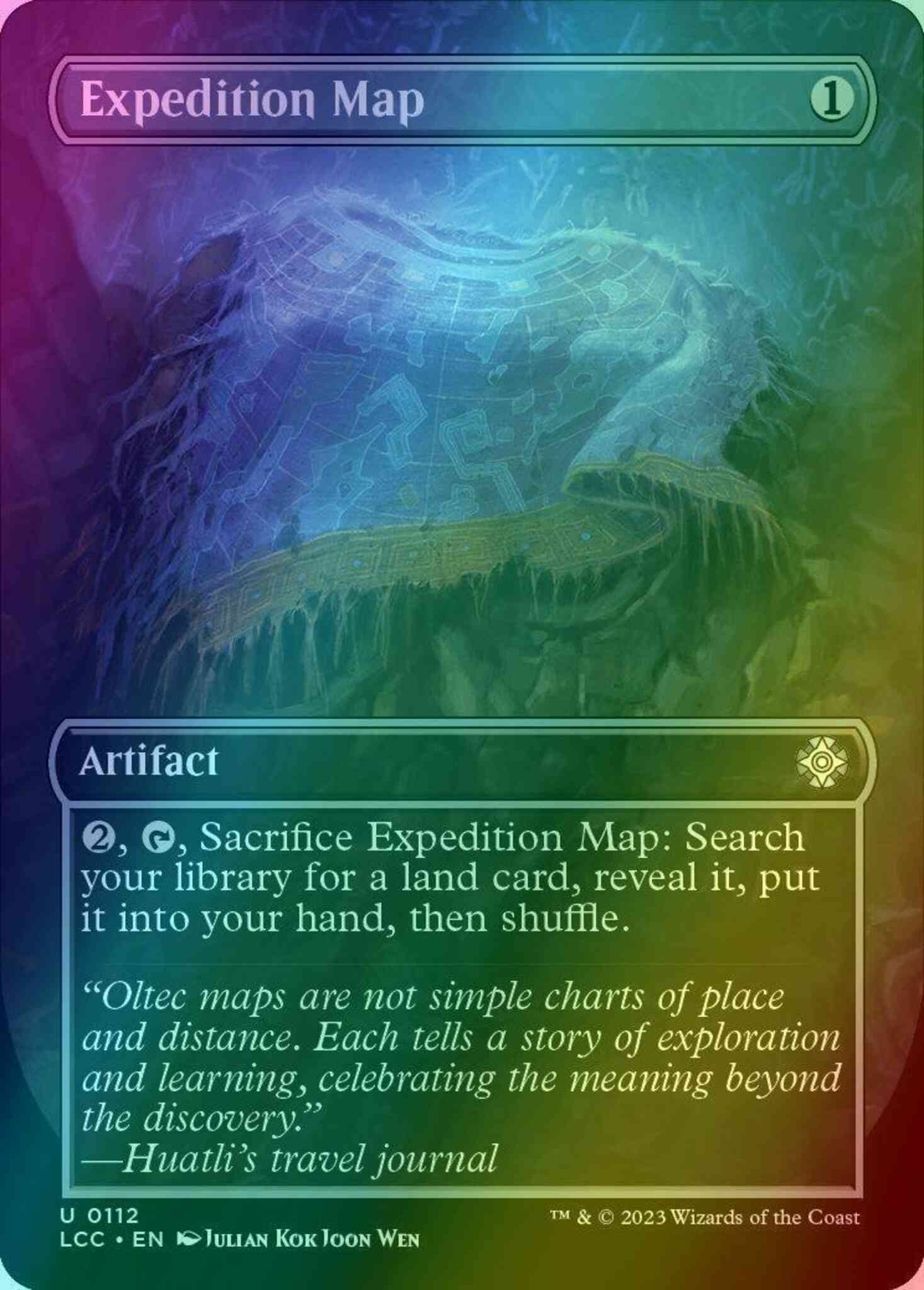 {2}, {T}, Sacrifice Expedition Map: Search your library for a land card, reveal it, put it into your hand, then shuffle.