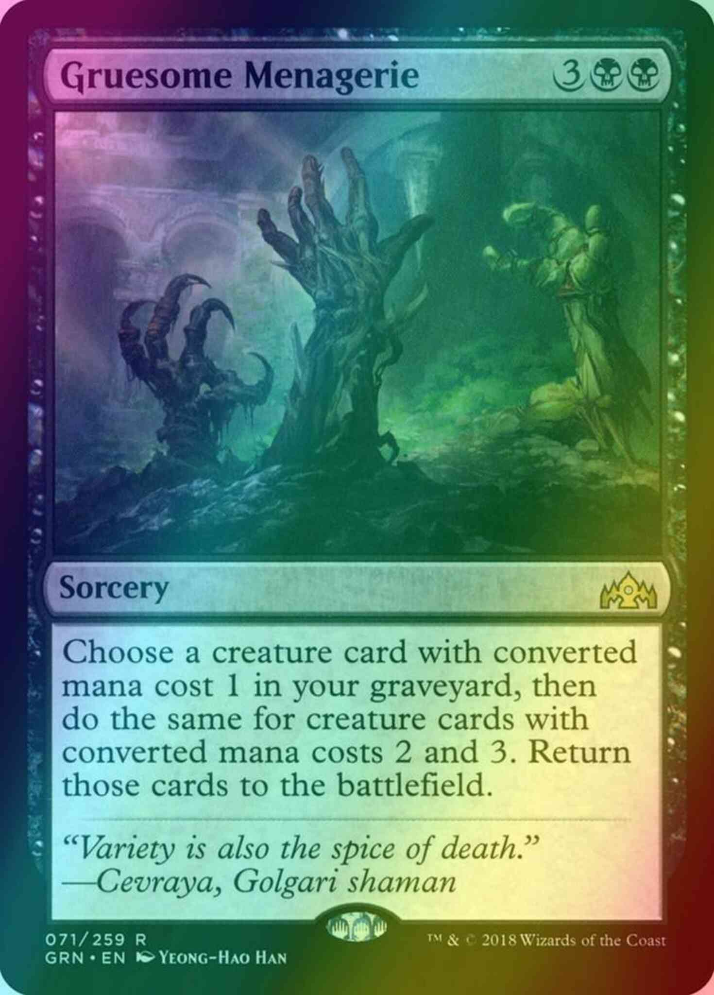Card Text: Choose a creature card with converted mana cost 1 in your graveyard, then do the same for creature cards with converted mana costs 2 and 3. Return those cards to the battlefield.
