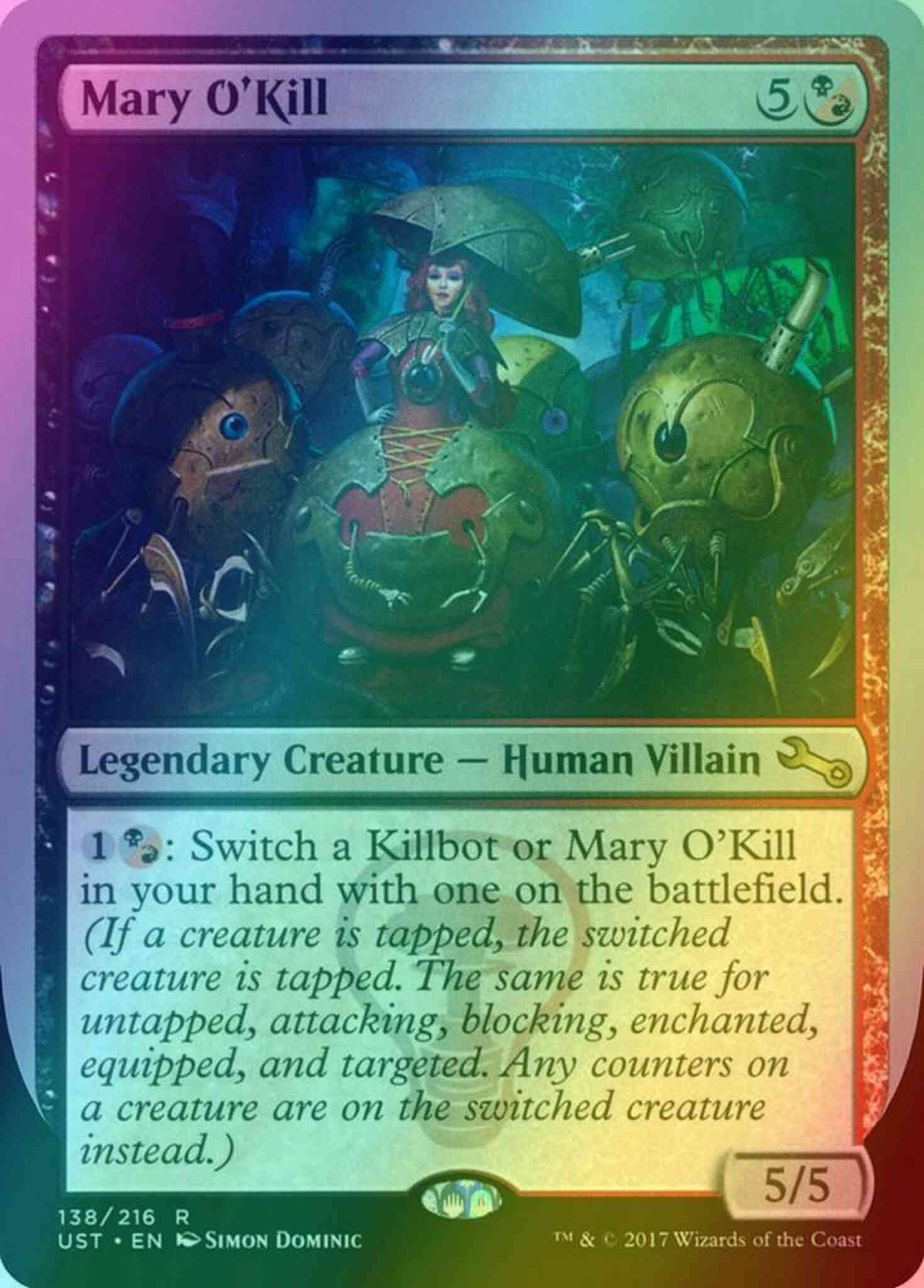 {1}{B/R}: Switch a Killbot or Mary O'Kill in your hand with one on the battlefield. (If a creature is tapped, the switched creature is tapped. The same is true for untapped, attacking, blocking, enchanted, equipped, and targeted. Any counters on a creature are on the switched creature instead.)