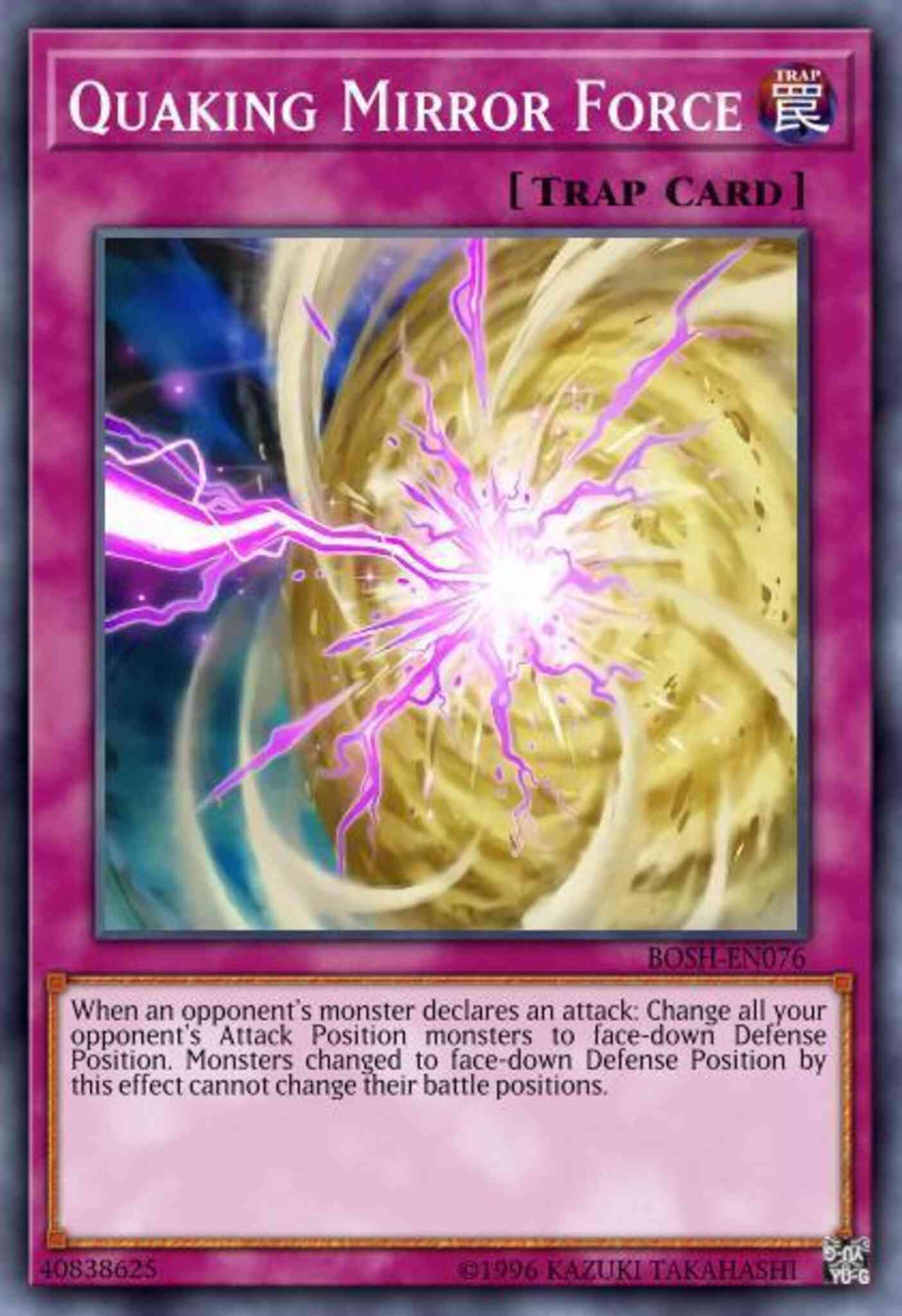 When an opponent's monster declares an attack: Change all your opponent's Attack Position monsters to face-down Defense Position. Monsters changed to face-down Defense Position by this effect cannot change their battle positions.
