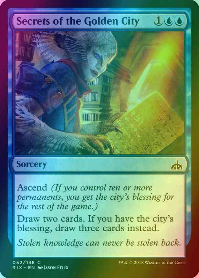 Texte de la carte: Ascension (Si vous contrôlez au moins dix permanents, vous gagnez l'agrément de la cité pour le reste de la partie.) Piochez deux cartes. Si vous avez l'agrément de la cité, piochez trois cartes à la place.