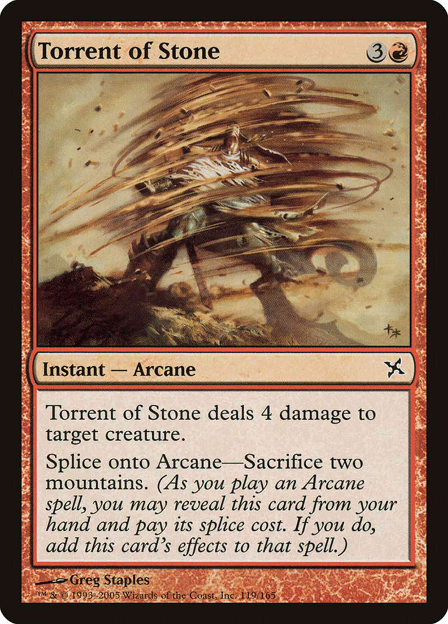 Le Torrent de pierres inflige 4 blessures à la créature ciblée.