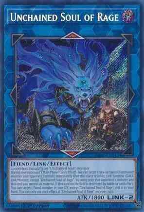 Texte de la carte: 2 monstres (un monstre "Âme Désenchaînée" inclus) Durant la Main Phase de votre adversaire (Effet Rapide) : vous pouvez cibler 1 monstre face recto Invoqué Spécialement contrôlé par votre adversaire ; immédiatement après la résolution de cet effet, Invoquez par Lien 1 Monstre Lien TÉNÈBRES ("Âme Désenchaînée de la Rage" exclu), en utilisant uniquement le monstre de l'adversaire et cette carte que vous contrôlez comme Matériel. Si cette carte sur le Terrain est détruite au combat ou par un effet de carte : vous pouvez cibler 1 monstre Démon ("Âme Désenchaînée de la Rage" exclu) dans votre Cimetière ; ajoutez-le à votre main. Vous ne pouvez utiliser chaque effet de "Âme Désenchaînée de la Rage" qu'une fois par tour.