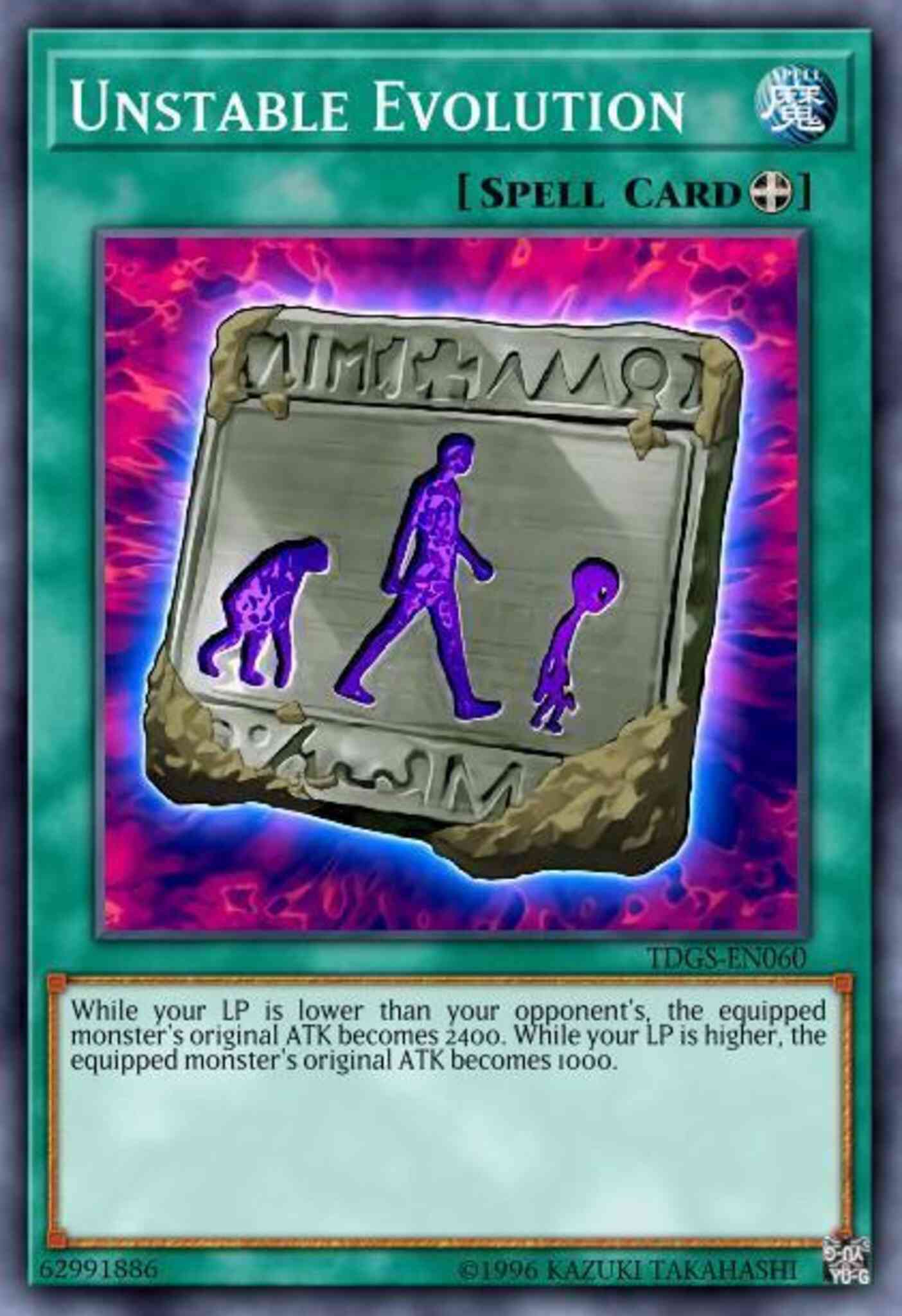 Tant que vos LP sont inférieurs à ceux de votre adversaire, l'ATK d'origine du monstre équipé devient 2400. Tant que vos LP sont supérieurs, l'ATK d'origine du monstre équipé devient 1000.