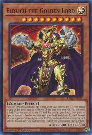 Vous pouvez envoyer cette carte et 1 Magie/Piège depuis votre main au Cimetière, puis ciblez 1 carte sur le Terrain ; envoyez-la au Cimetière. Si cette carte est dans votre Cimetière : vous pouvez envoyer 1 Magie/Piège que vous contrôlez au Cimetière ; ajoutez cette carte à votre main, puis vous pouvez Invoquer Spécialement 1 monstre Zombie depuis votre main, et si vous le faites, jusqu'à la fin du tour de votre adversaire, il gagne 1000 ATK/DEF et ne peut pas être détruit par des effets de carte. Vous ne pouvez utiliser chaque effet de "Surnaliche le Seigneur d'Or" qu'une fois par tour.