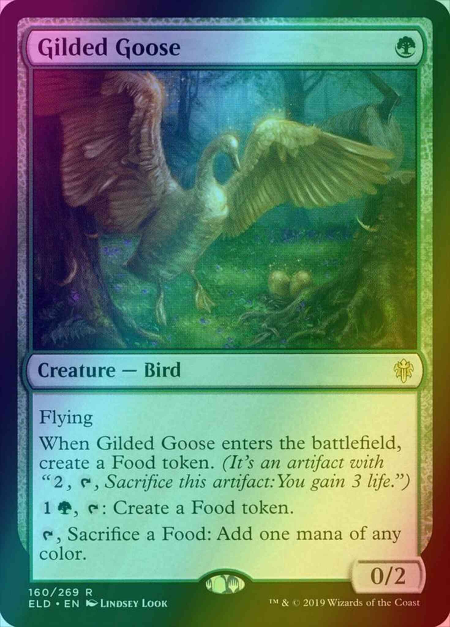 Quand l'Oie d'or arrive sur le champ de bataille, créez un jeton Nourriture. (C'est un artefact avec « {2}, {T}, sacrifiez cet artefact : Vous gagnez 3 points de vie. »)