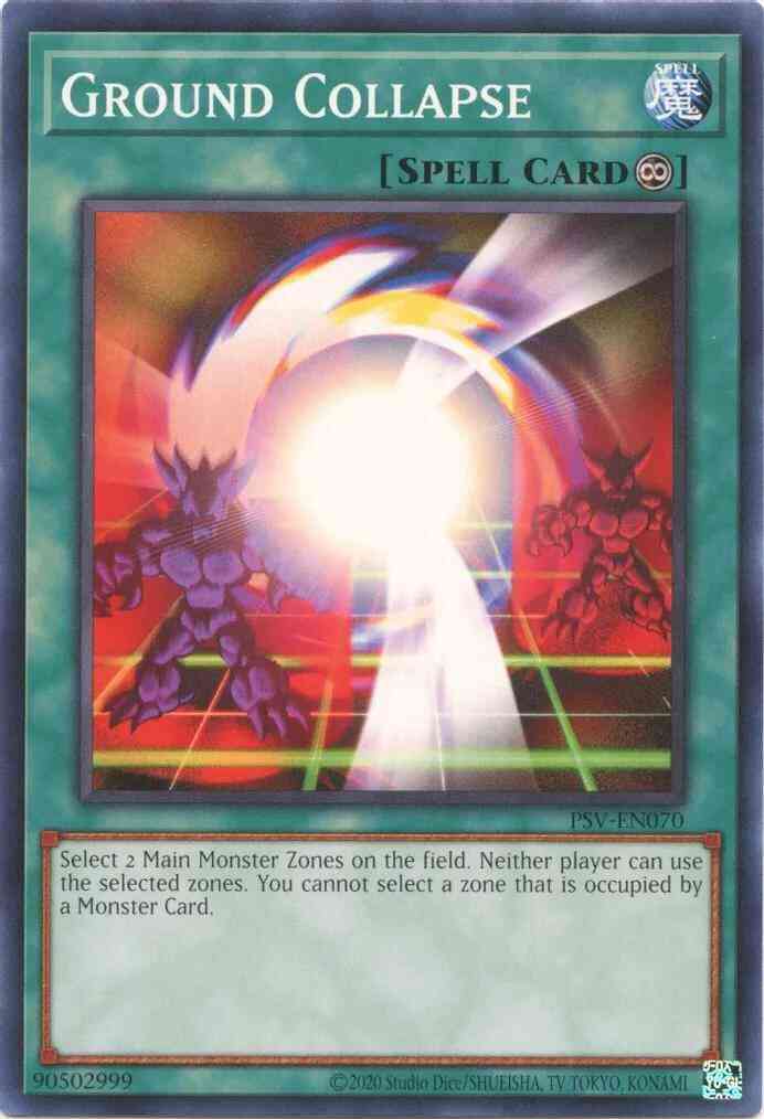 Sélectionnez 2 Zones de Carte Monstre sur le Terrain (Vous ne pouvez pas sélectionner une Zone occupée par une Carte Monstre). Les Zones sélectionnées ne peuvent être utilisées tant que cette carte reste face recto sur le Terrain.