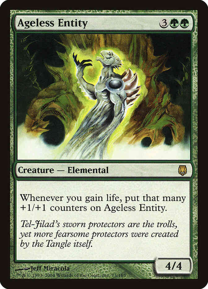Whenever you gain life, put that many +1/+1 counters on Ageless Entity.