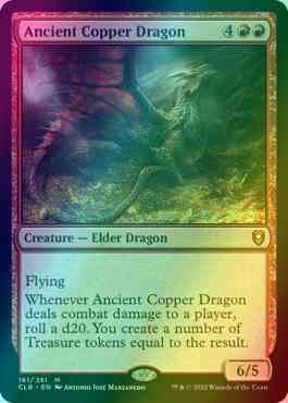 Card Text: Flying Whenever Ancient Copper Dragon deals combat damage to a player, roll a d20. You create a number of Treasure tokens equal to the result.