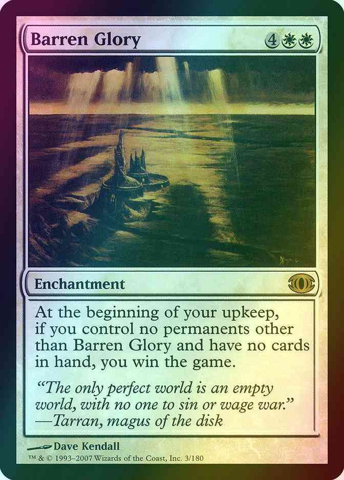 At the beginning of your upkeep, if you control no permanents other than Barren Glory and have no cards in hand, you win the game.