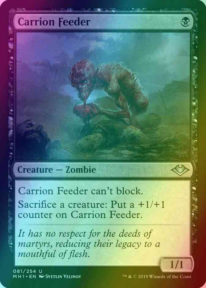 Card Text: Carrion Feeder can't block. Sacrifice a creature: Put a +1/+1 counter on Carrion Feeder.