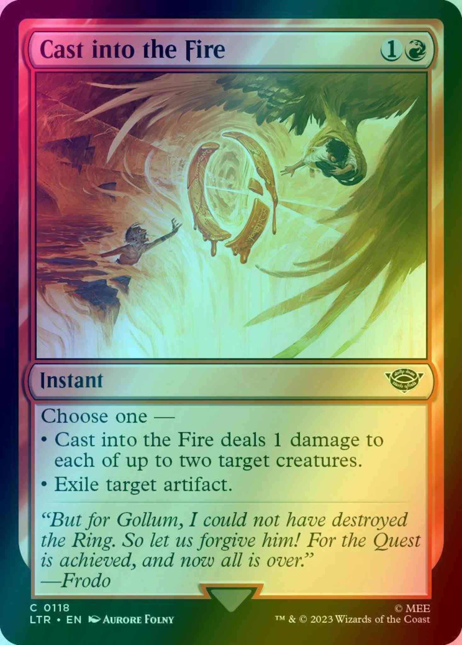 Card Text: Choose one — • Cast into the Fire deals 1 damage to each of up to two target creatures. • Exile target artifact.