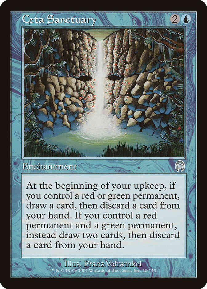 At the beginning of your upkeep, if you control a red or green permanent, draw a card, then discard a card. If you control a red permanent and a green permanent, instead draw two cards, then discard a card.