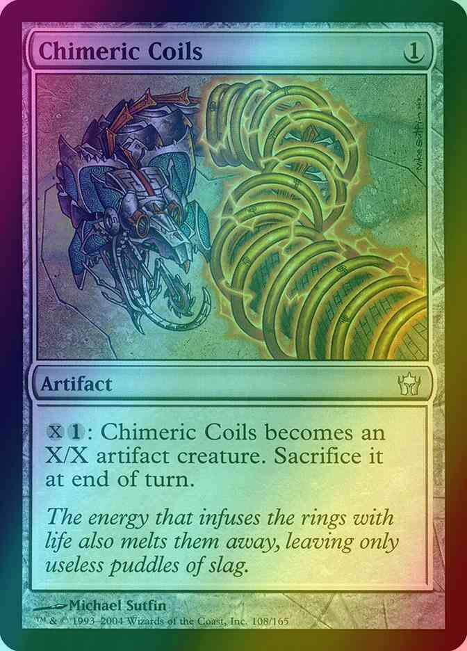Card Text: {X}{1}: Chimeric Coils becomes an X/X Construct artifact creature. Sacrifice it at the beginning of the next end step.