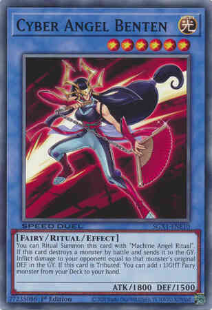 You can Ritual Summon this card with "Machine Angel Ritual". If this card destroys a monster by battle and sends it to the GY: Inflict damage to your opponent equal to that monster's original DEF in the GY. If this card is Tributed: You can add 1 LIGHT Fairy monster from your Deck to your hand.
