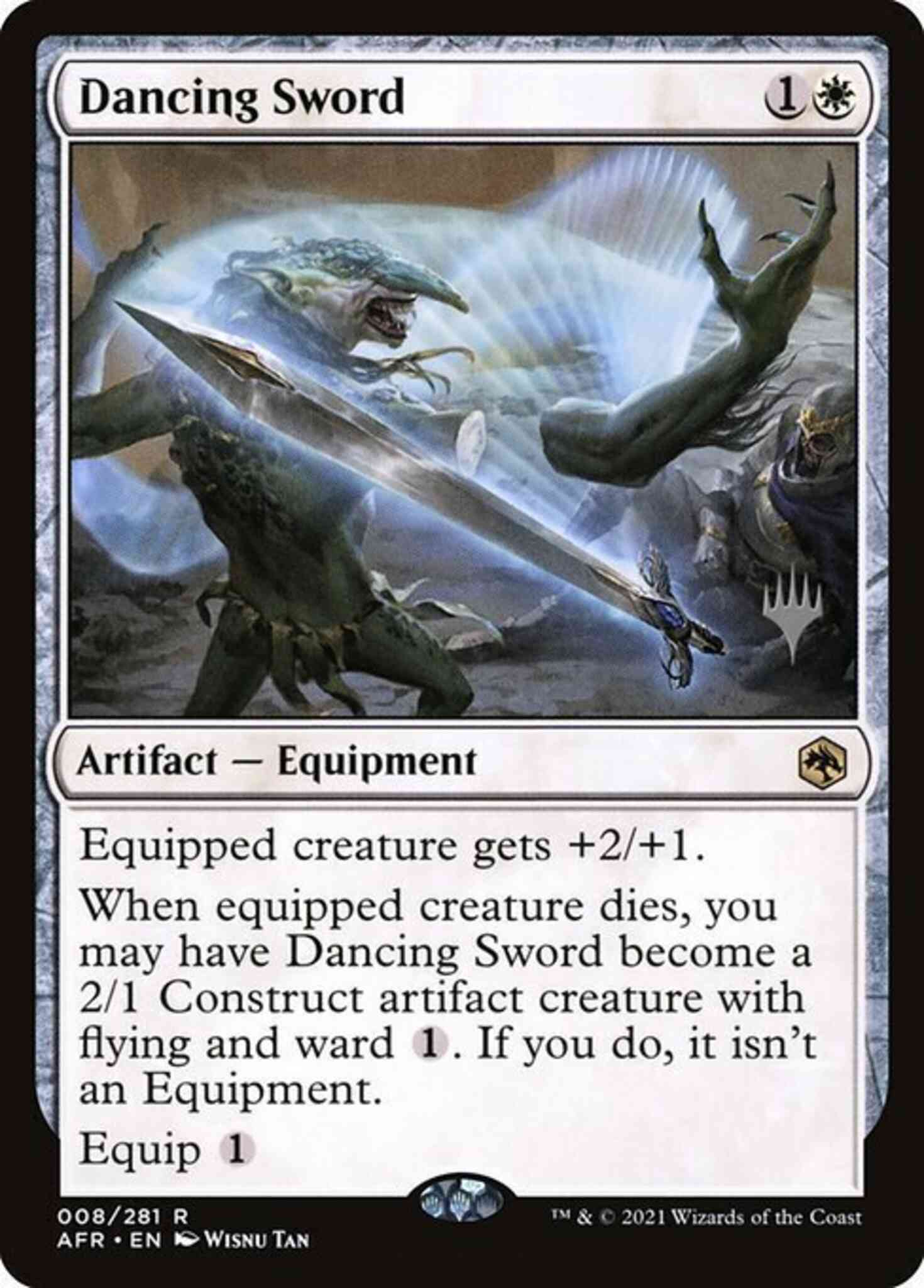When equipped creature dies, you may have Dancing Sword become a 2/1 Construct artifact creature with flying and ward {1}. If you do, it isn't an Equipment.