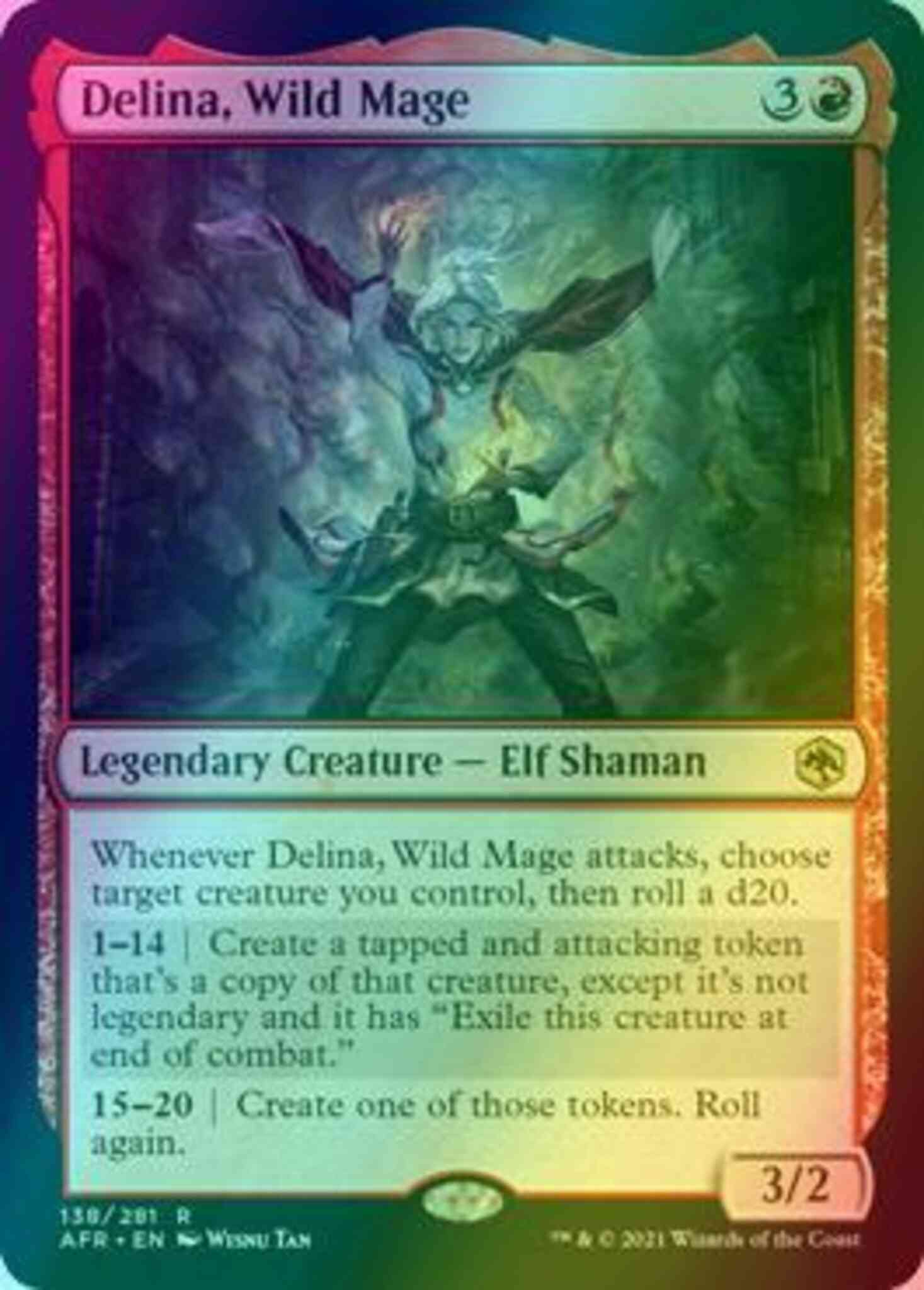 Whenever Delina, Wild Mage attacks, choose target creature you control, then roll a d20.