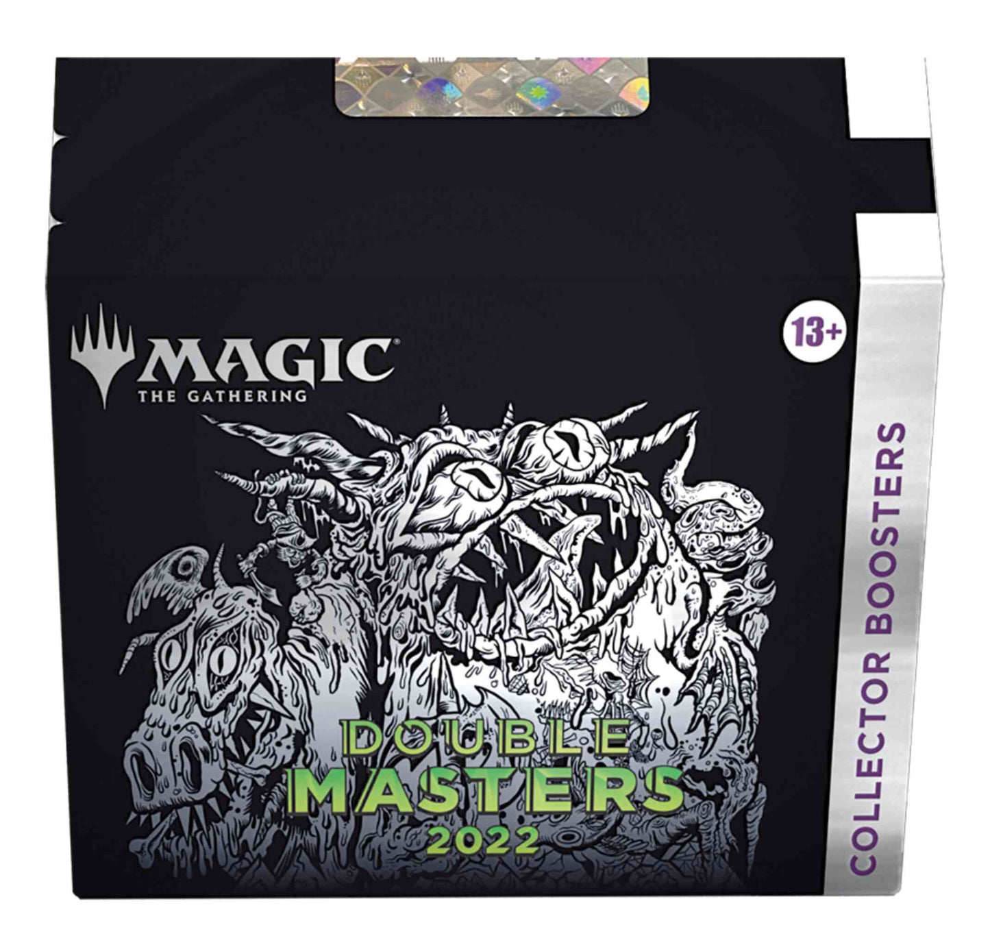The Double Masters 2022 Collector Booster Box contains 4 Double Masters 2022 Collector Boosters. Each Collector Booster contains 15 cards and 1 Traditional Foil double-sided token, with a combination of 4 cards of rarity Rare or higher, 2–6 Uncommon, and 5–9 Common cards. Every pack contains 10–11 Traditional Foil cards and 1 Rare or Mythic Rare Foil-Etched card
