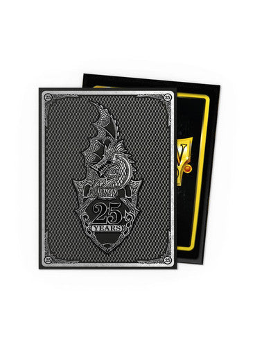 To celebrate Dragon Shield's 25th anniversary, we have released a special edition Matte Art sleeve cast in black and decorated with our silver anniversary shield artwork.