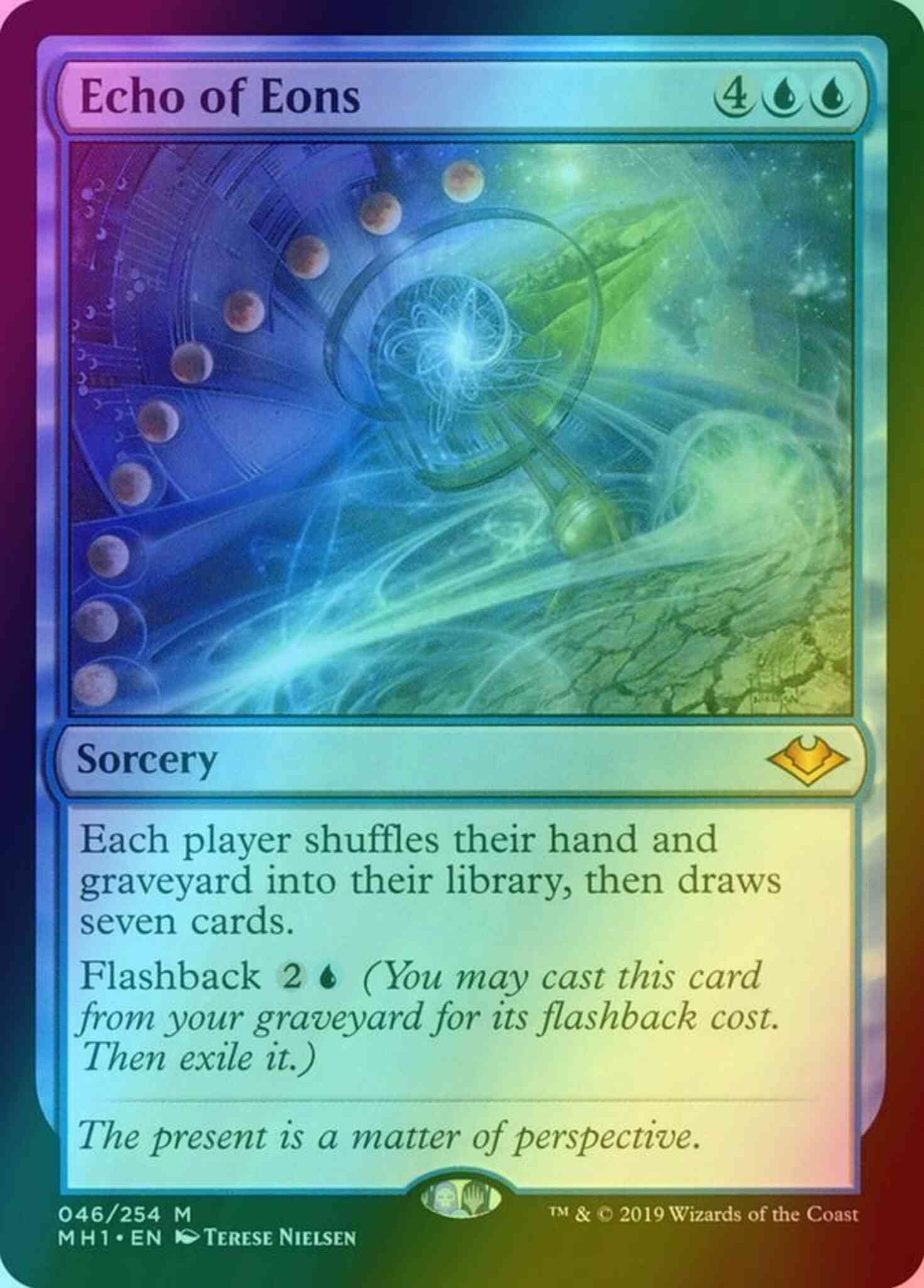 Card Text: Each player shuffles their hand and graveyard into their library, then draws seven cards. Flashback {2}{U} (You may cast this card from your graveyard for its flashback cost. Then exile it.)
