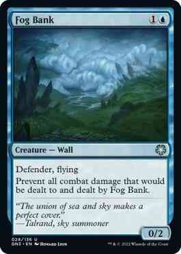 Card Text: Defender, flying Prevent all combat damage that would be dealt to and dealt by Fog Bank.