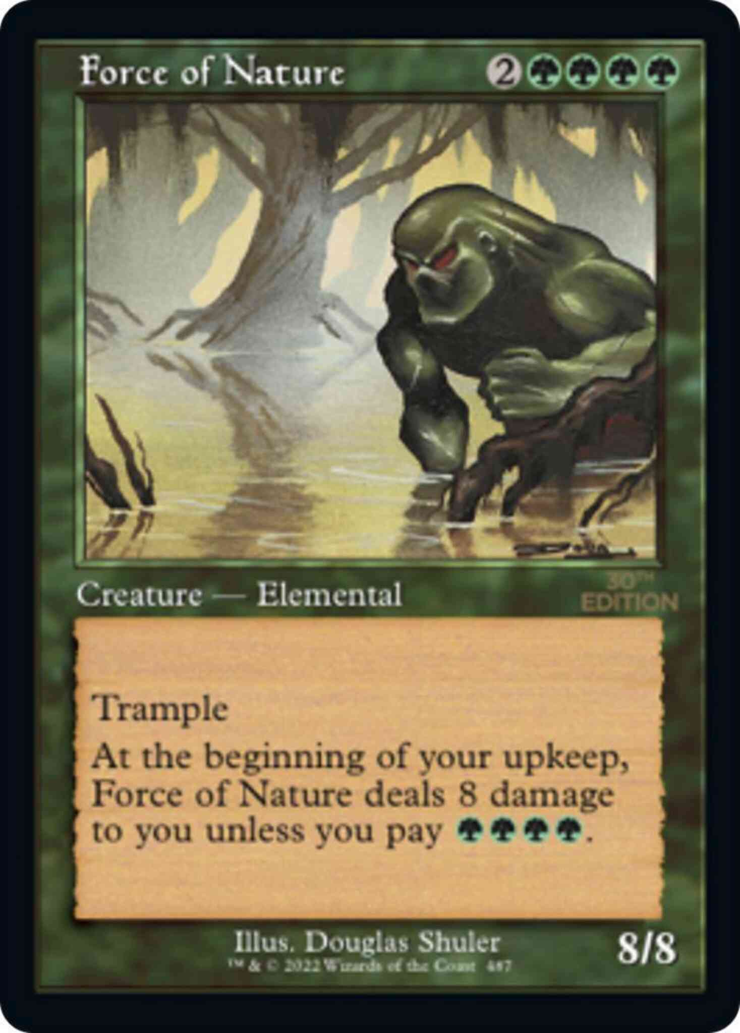 At the beginning of your upkeep, Force of Nature deals 8 damage to you unless you pay {G}{G}{G}{G}.