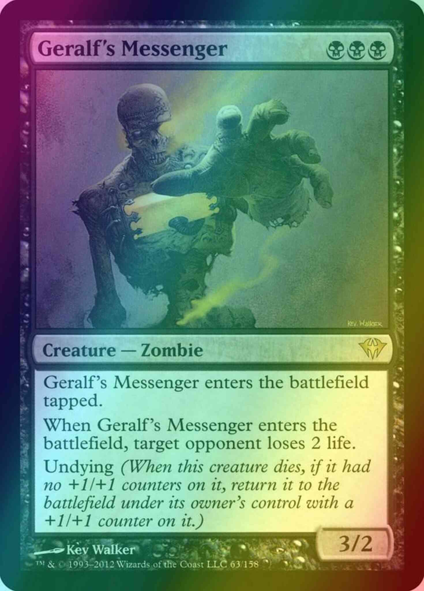 When Geralf's Messenger enters the battlefield, target opponent loses 2 life.