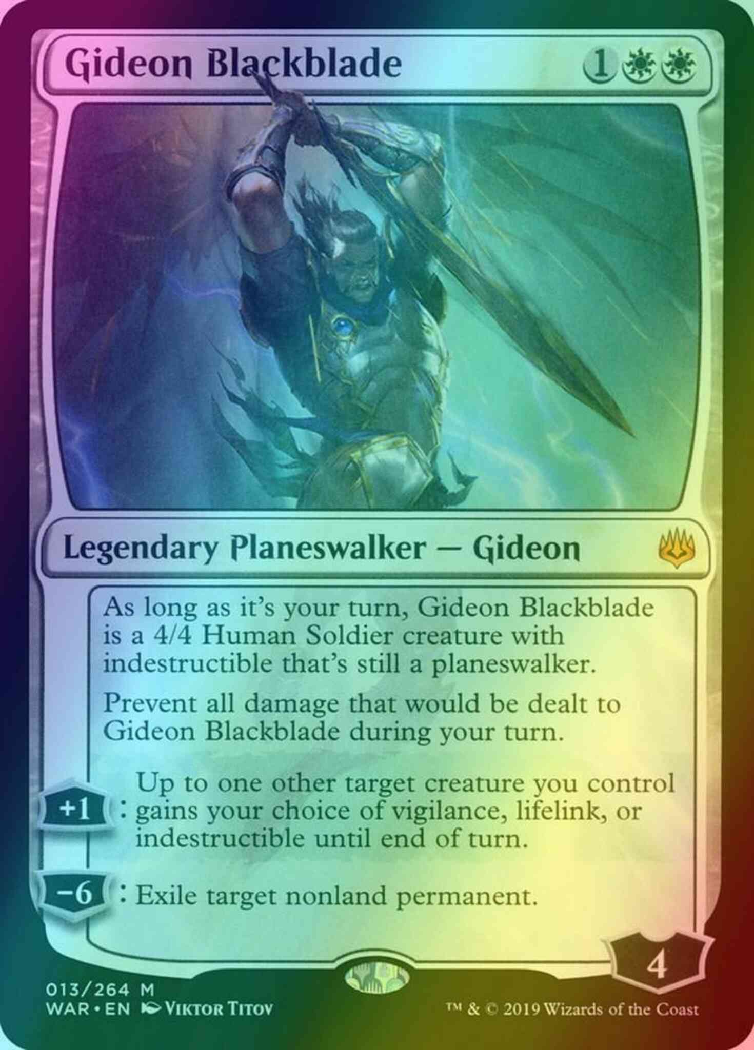 Prevent all damage that would be dealt to Gideon Blackblade during your turn.