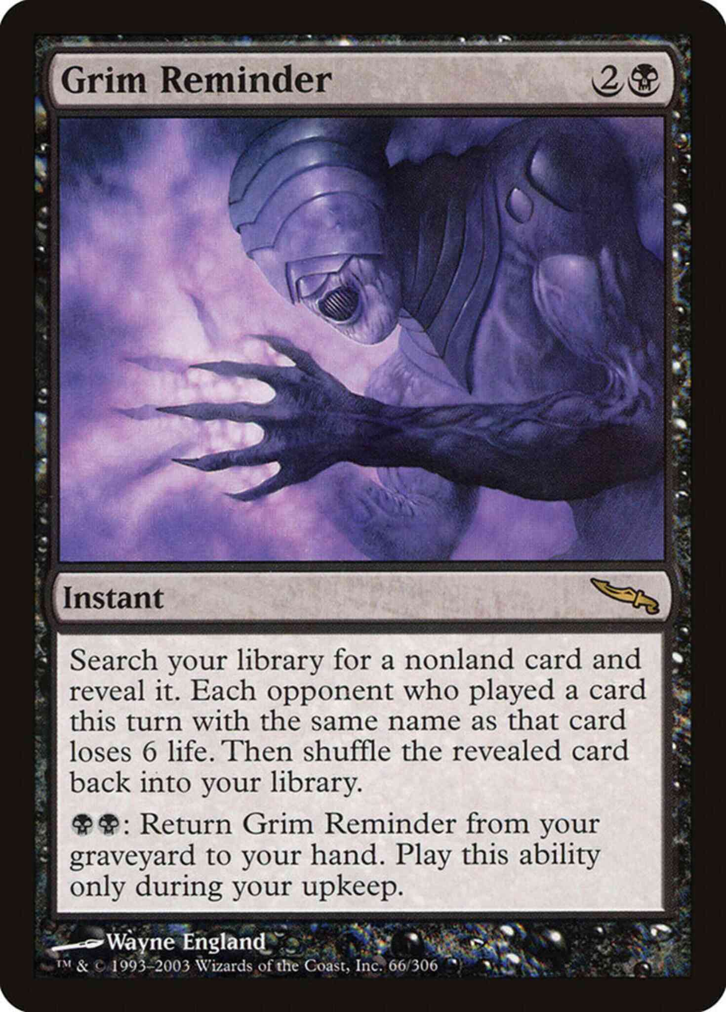 {B}{B}: Return Grim Reminder from your graveyard to your hand. Activate this ability only during your upkeep.