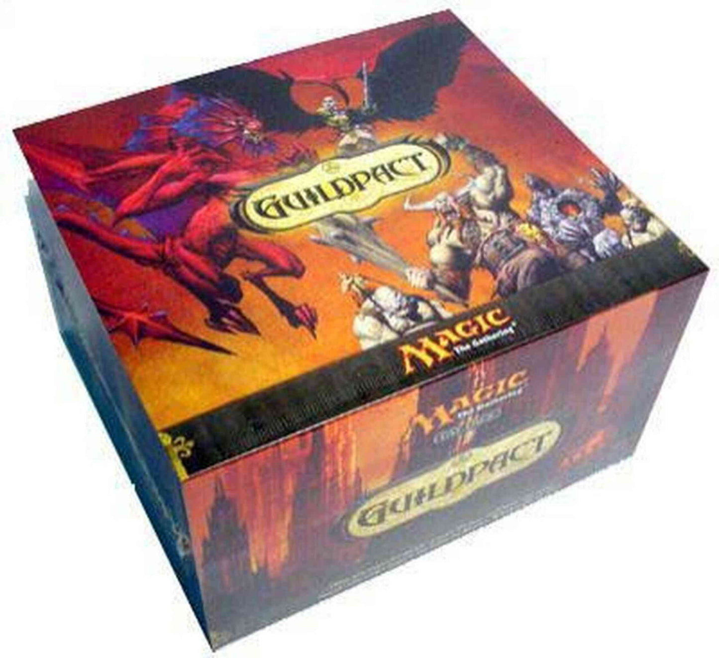 Includes a player’s guide, two card boxes, six 15-card booster packs, 40 basic land cards, one random Pro Tour player card, a special-edition life counter, and the Guildpact novel.