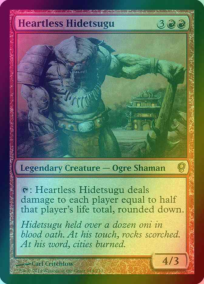 Card Text: {T}: Heartless Hidetsugu deals damage to each player equal to half that player's life total, rounded down.