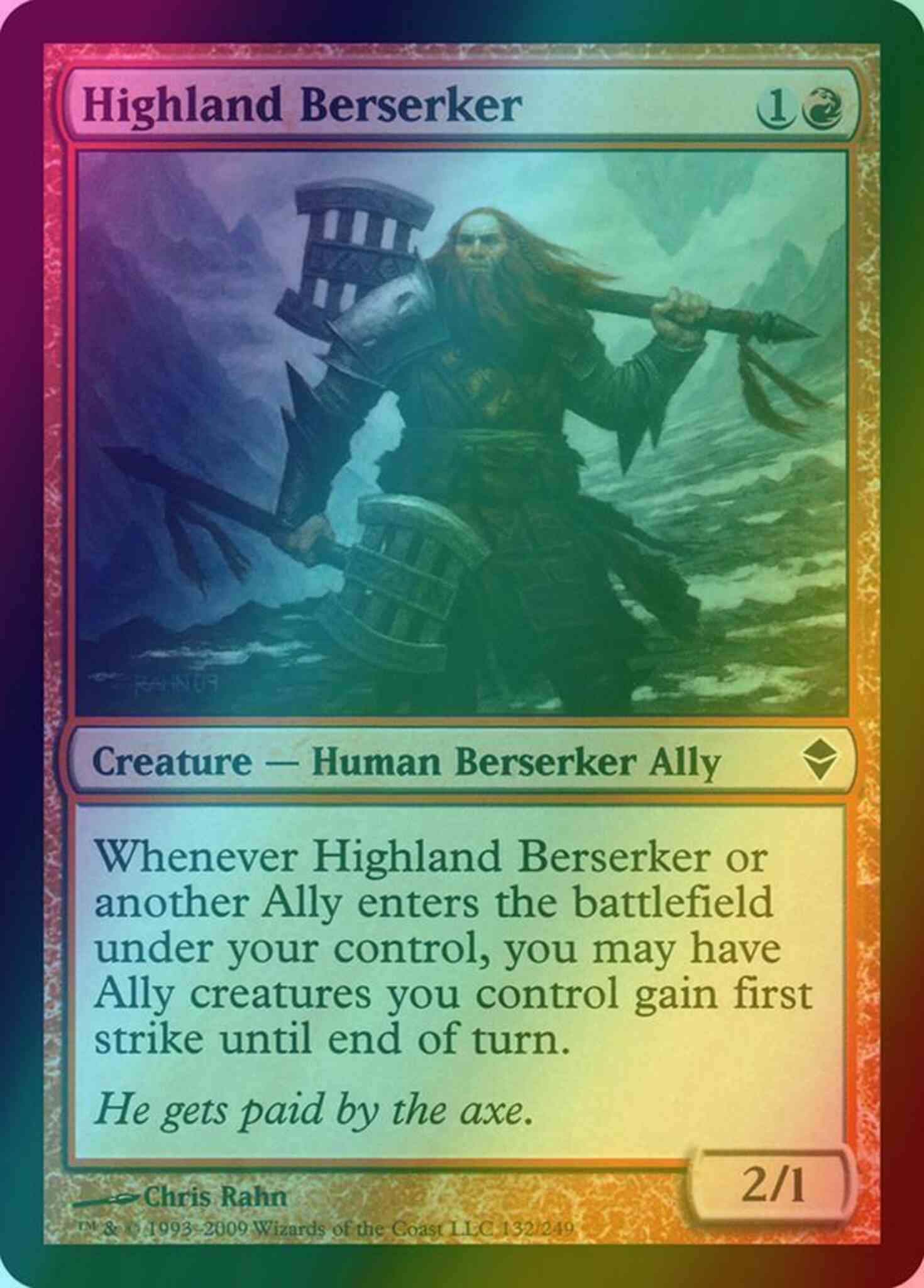 Card Text: Whenever Highland Berserker or another Ally enters the battlefield under your control, you may have Ally creatures you control gain first strike until end of turn.