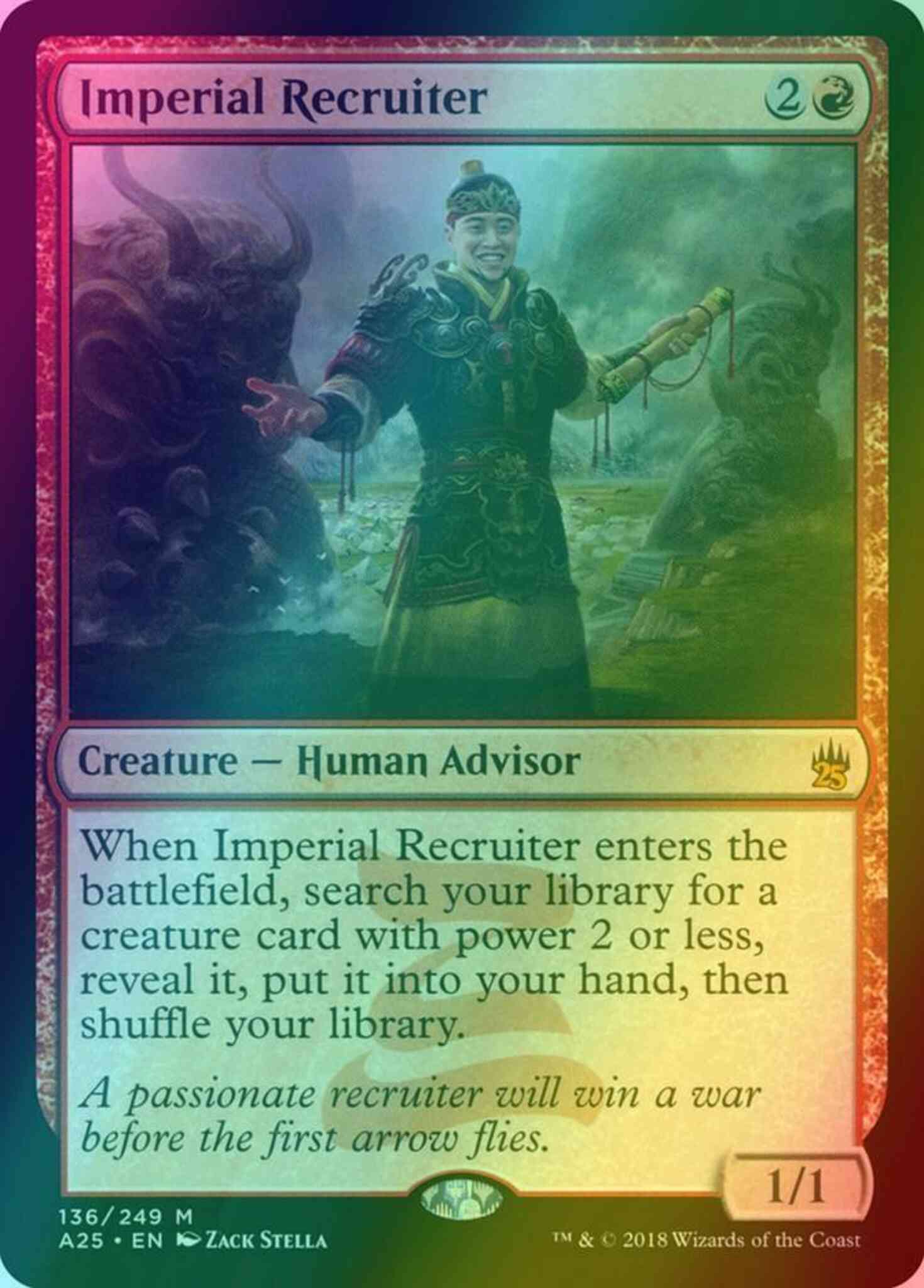 Card Text: When Imperial Recruiter enters the battlefield, search your library for a creature card with power 2 or less, reveal it, put it into your hand, then shuffle your library.
